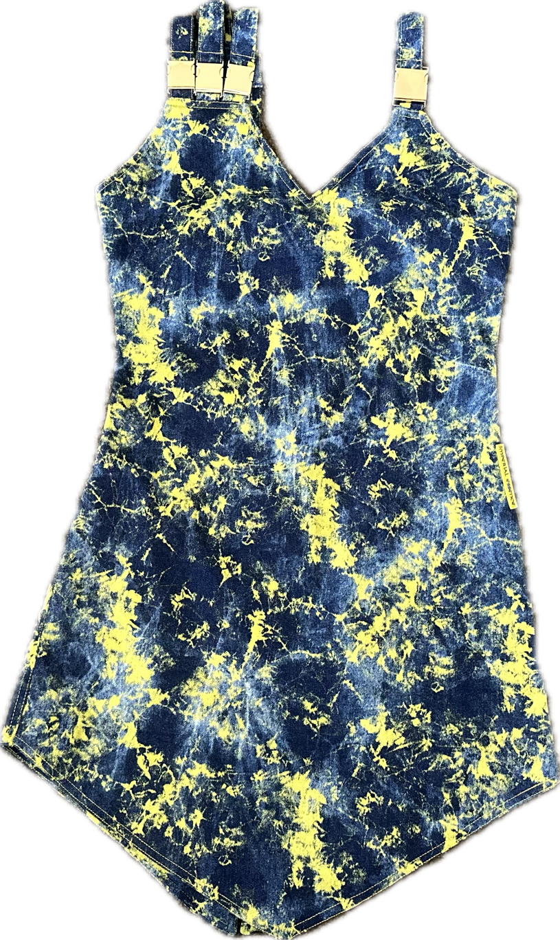 Denim V-cut buckle dress (IE004)