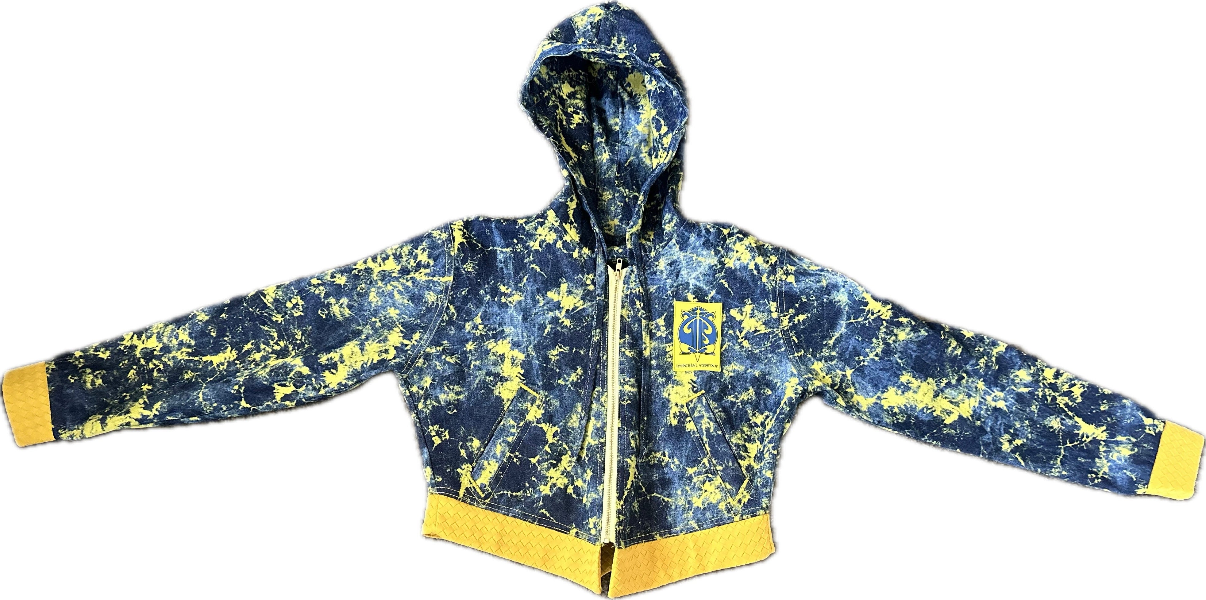 Denim V-cut embossed leather hoodie (IE005)
